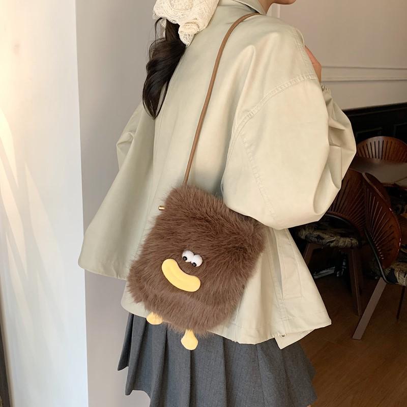 Geantă de umăr pluș drăguță de desene animate și portofel pentru monede pentru studenți