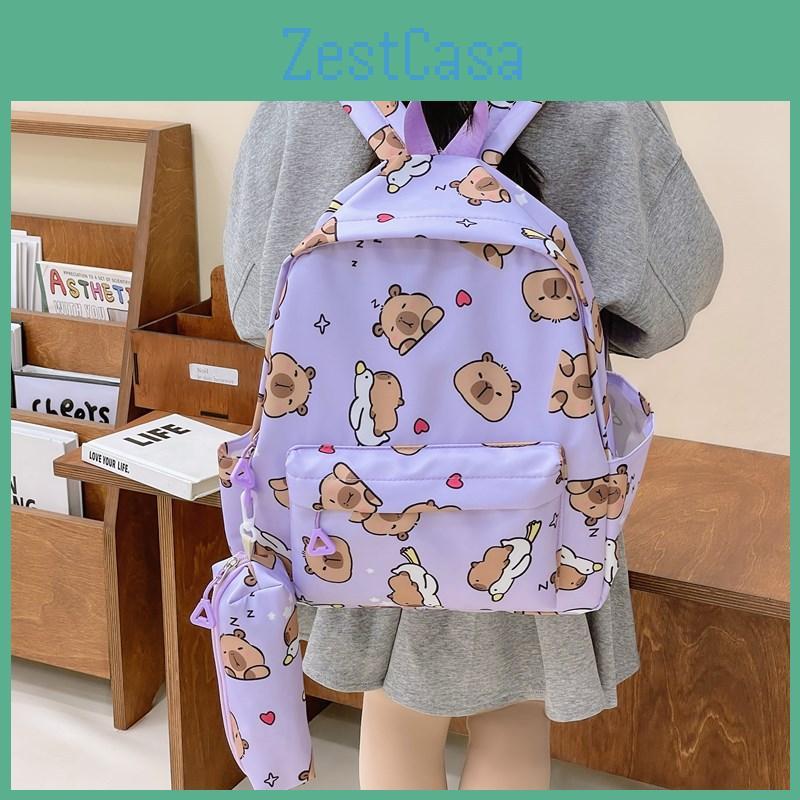 Capybara Dual Trendy Shoulder Backpack Featuring Pencil Holder For School Kids