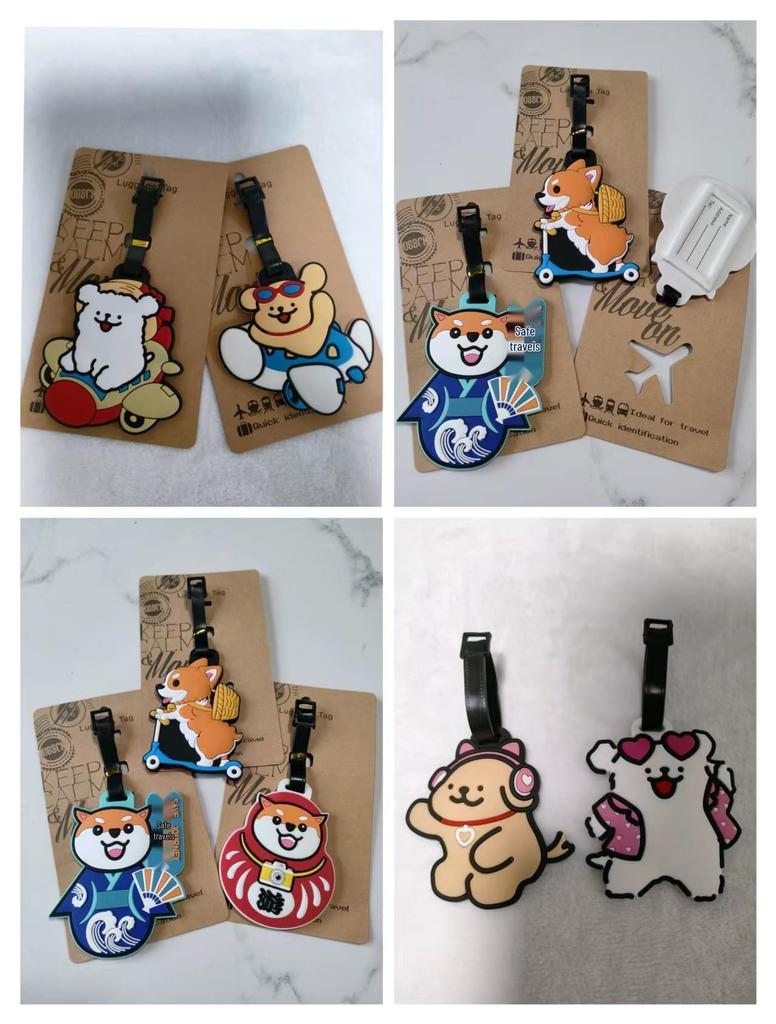Etichetă moale din cauciuc pentru bagaje, cu desene animate: Bichon Maltez, Golden Retriever și Corgi