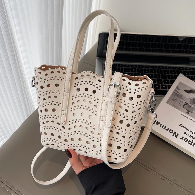 High-end carved hollow portable small bag women's 2025 new fashion texture bucket bag single shoulder messenger bag tide