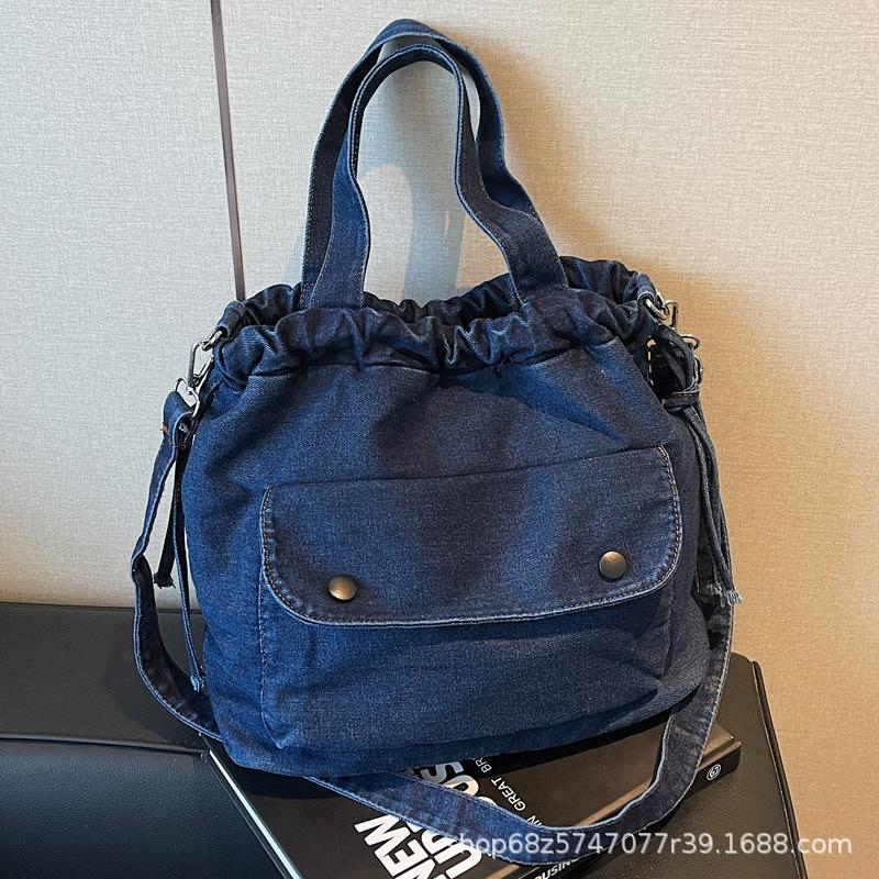 2025 New Pleated Drawstring Large Capacity Simple Commuter Bag Fashion Crossbody Bag Vintage Denim Shoulder Bag