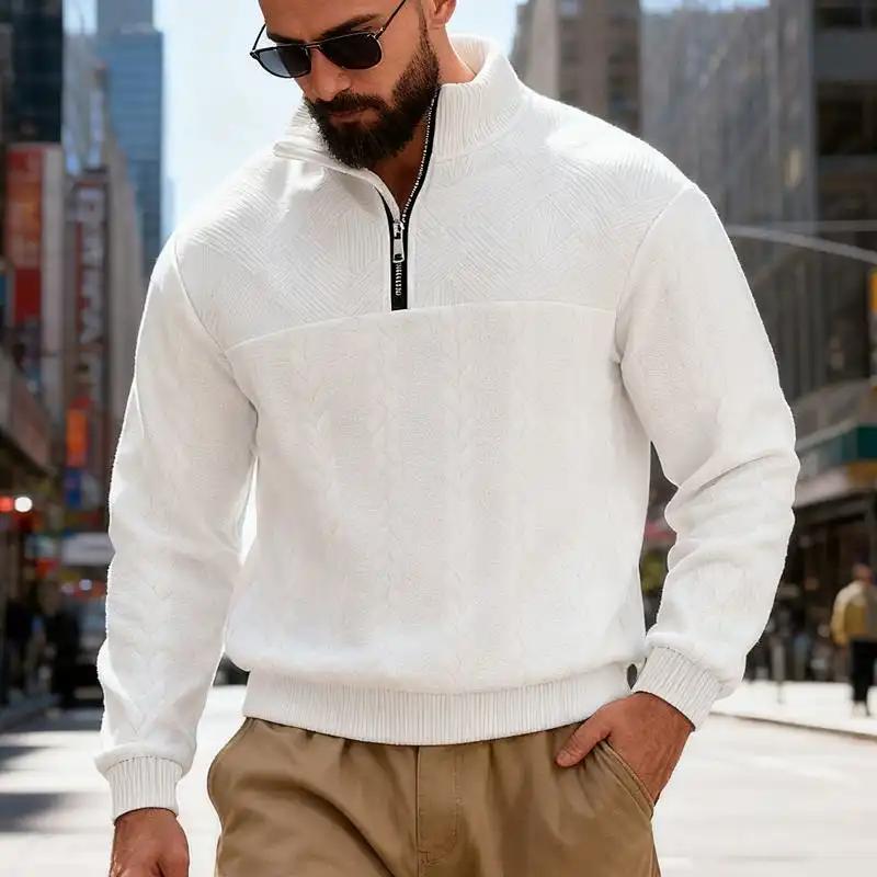 Men's Style Retro Casual Stand Collar Pullover Loose Knit Patchwork Jacquard Autumn Winter New Style Long Sleeve Hoodie