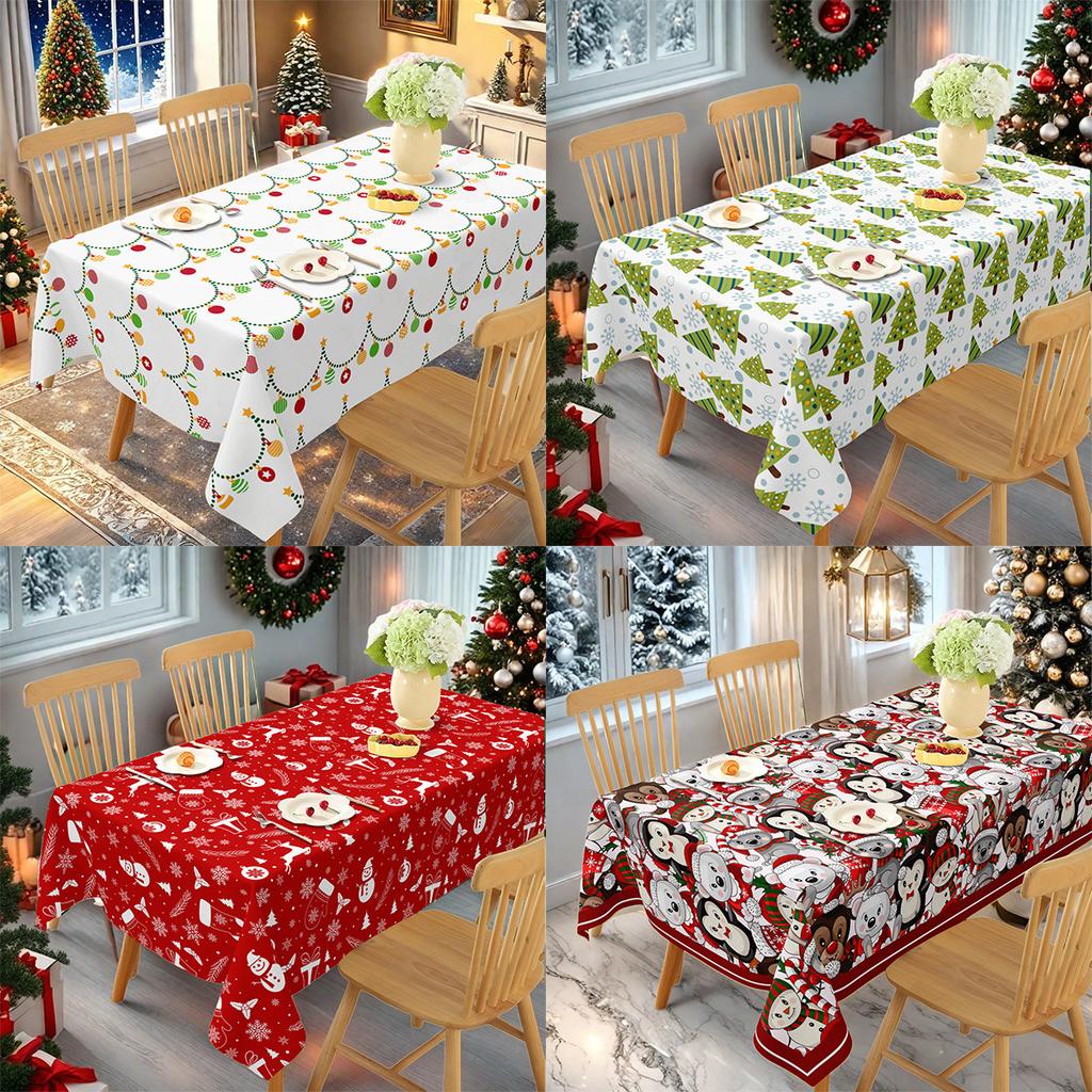 1pc 2026 Christmas Table Cloths Printed Waterproof Christmas Decoration Rectangle Party Table Cover Vintage Dining Table Cover