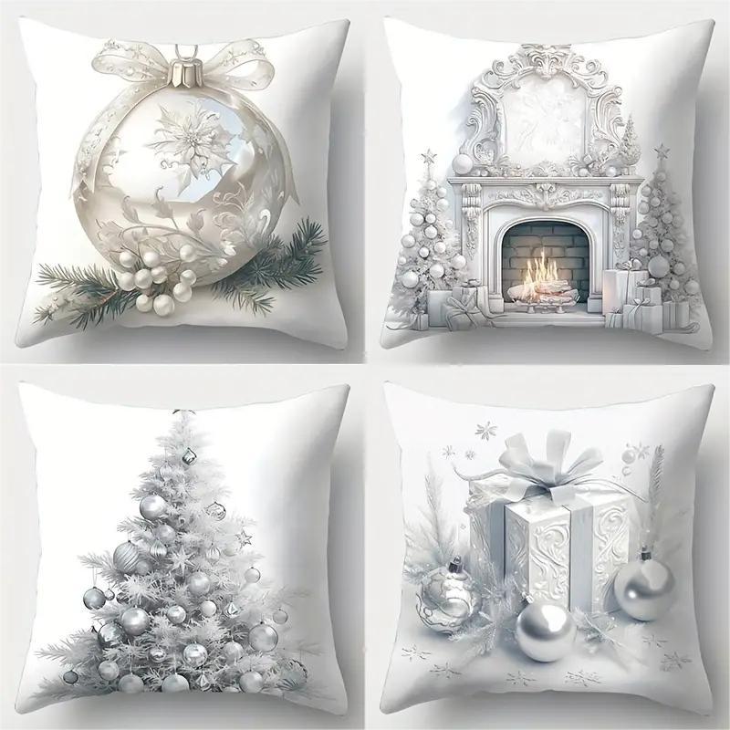1pc White Christmas Cushion Cover Pine Print Washable Durable Cover 2025 New for Home Ornament Xmas New Year Christmas Decor