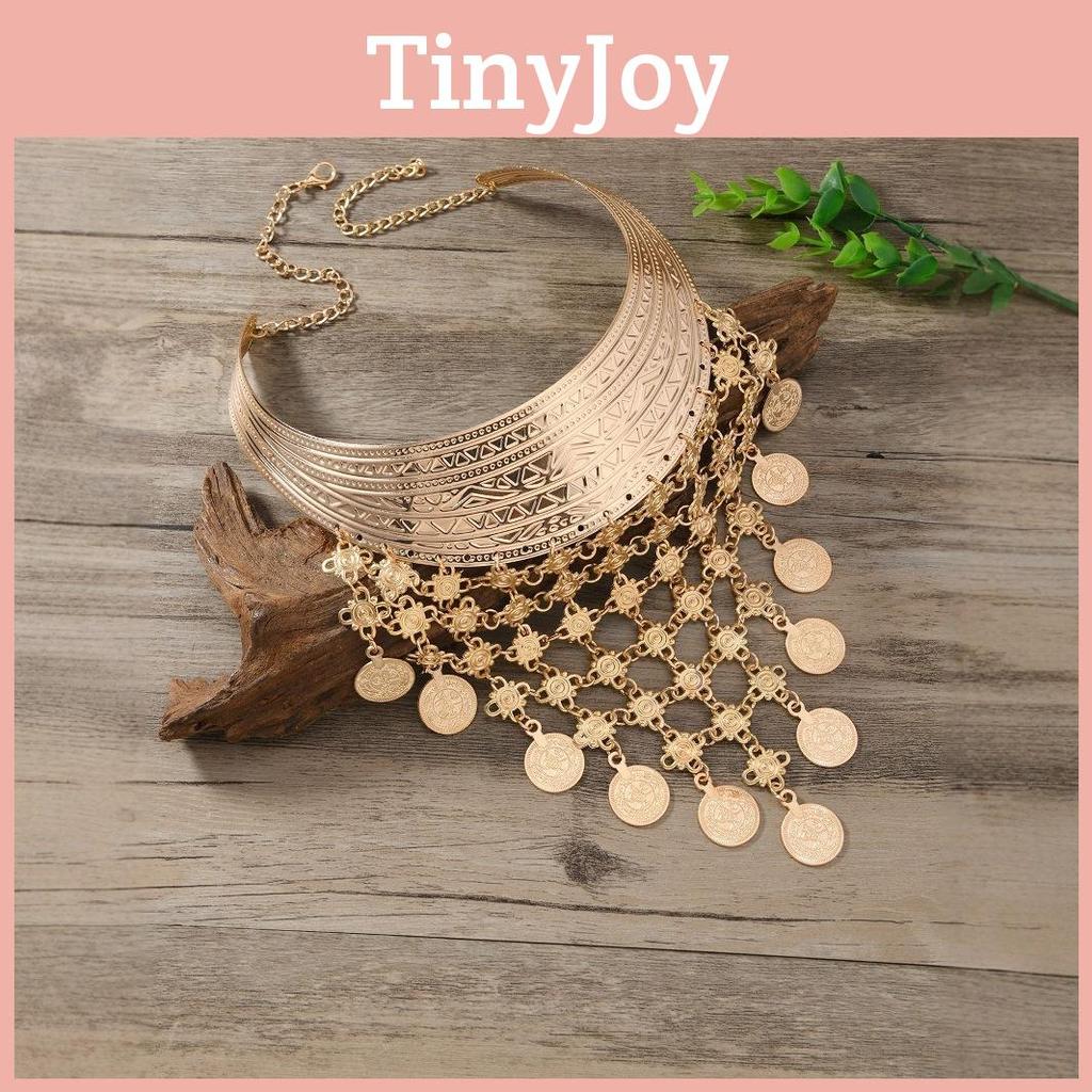 This fashion statement choker features bold, geometric designs crafted from zinc alloy with a durable electroplated finish in silver or gold tones.supporting an intricate alloy pendant with ethnic-inspired motifs. Ideal for summer festivals or artistic ensembles, the necklace enhances bohemian or vintage-inspired looks. Wipe clean with a soft cloth to maintain its finish.