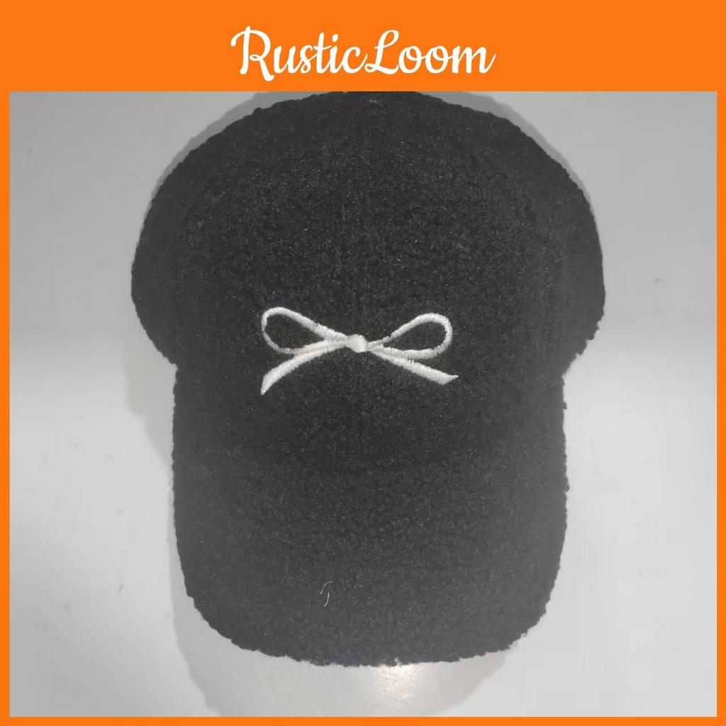 Plush Winter Baseball Cap With Embroidered Butterfly Bow Design For Wear Daily