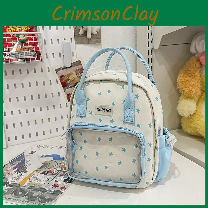 Fashionable Patterned Star Student Backpack With Transparent Compartment