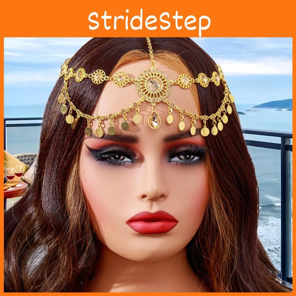 Gemstone Elegant Simulation Decoration Women Golden Headpiece With Tassel Design