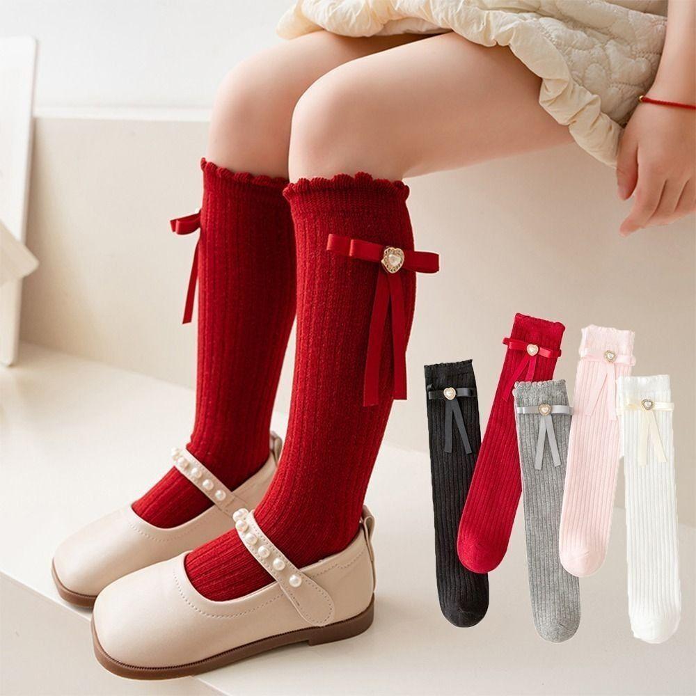 Cotton Children's Mid-calf Socks Red Children Mid-Length Socking Sweet Girls Socks New Year