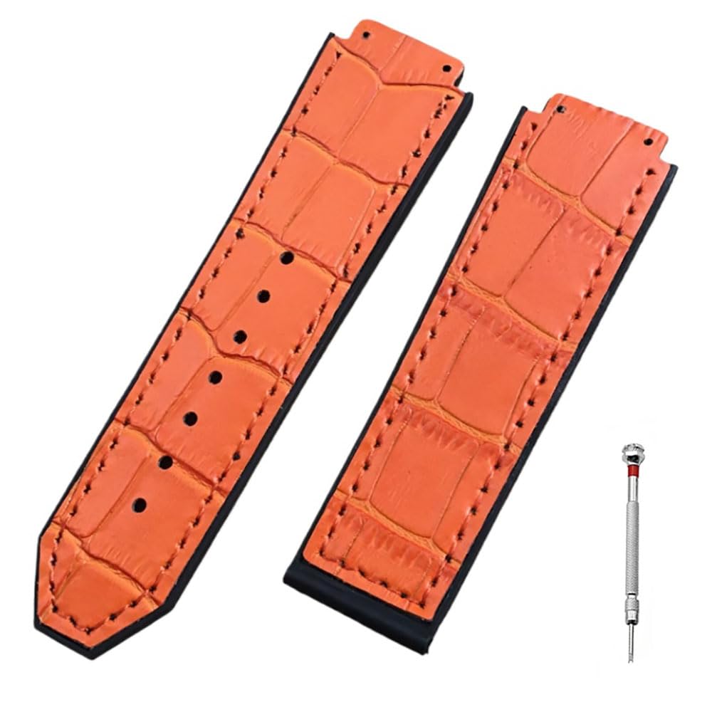 [syzynicy] Men's Rubber Strap with Cowhide Leather Top Layer, Silicone Bottom, Compatible with Hublot Big Bang Genuine Leather Straps (Orange)