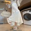 Korean Fashion Autumn Winter Women Pleated Skirt High Waist Beige Black Knitting Skirt Knitted Elegant Feminine Warm Skirts Womens