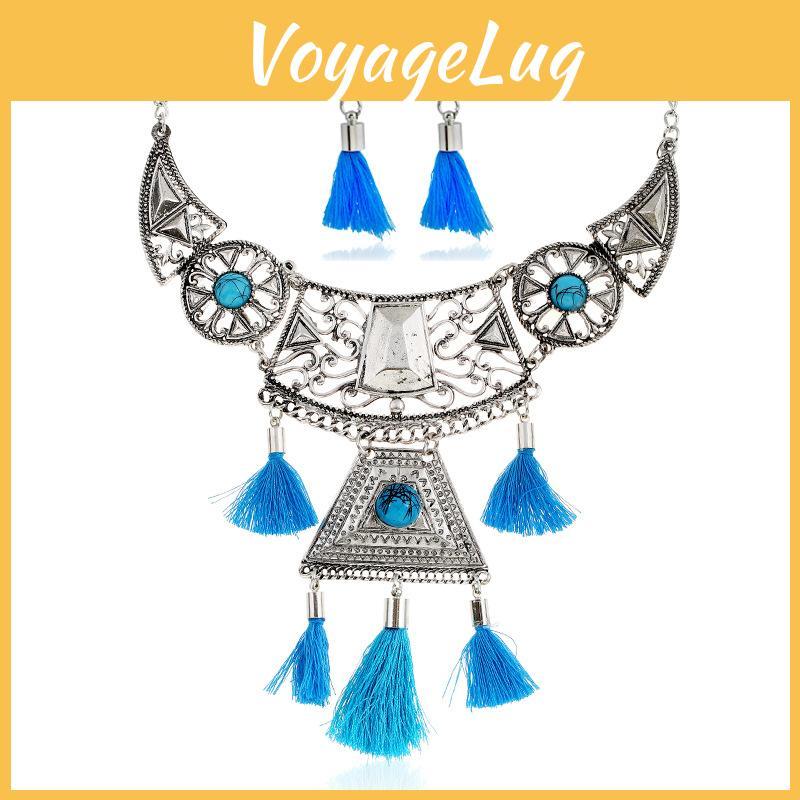 This vintage bohemian pendant necklace features a geometric alloy design with gemstone inlay and layered fringe, delivering a distinct ethnic style. Crafted from durable alloy,Suitable for gifting, travel souvenirs, or employee benefits, it supports versatile wear for both men and women. Care by wiping with a damp cloth maintains its appearance.