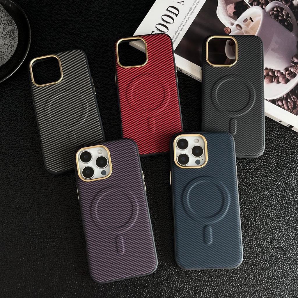 For IPhone 16 ProMax Kevlar Carbon Brazing Pattern Phone Case Magnetic for Apple 15 with Metal Lens Ring