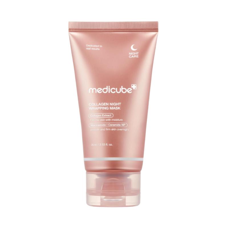 Medicube Collagen Overnight Wrapping Peel Off Facial Mask Pack is an overnight sleeping mask that helps improve elasticity, hydration and radiance while you sleep. The gel-cream texture forms a thin “wrapping” film on the skin, locking in moisture and active ingredients for intensive night care.