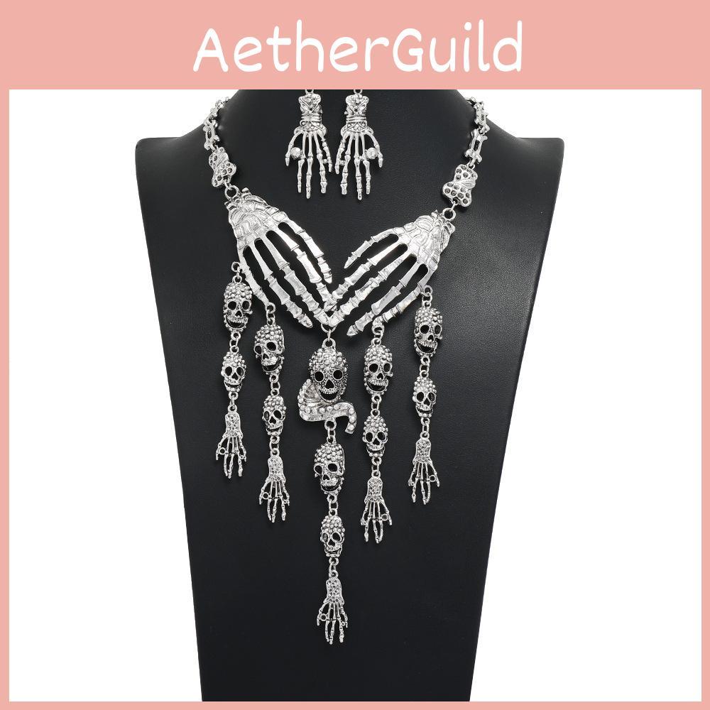 Hand Fashion Bone Women Necklace And Earring Set With Skeleton Fringe Design
