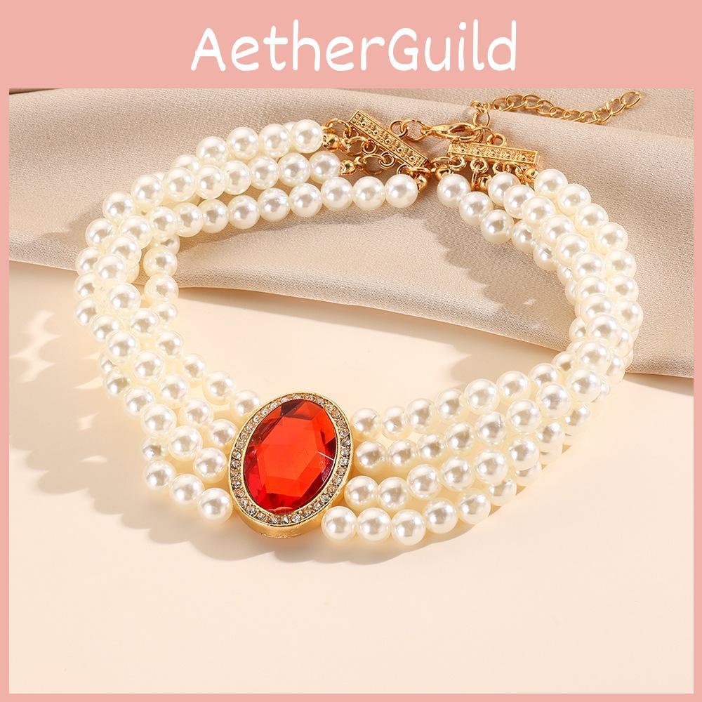 Palace Elegant Multi Layered Simulated Pearl Gemstone Necklace Accessory Neck