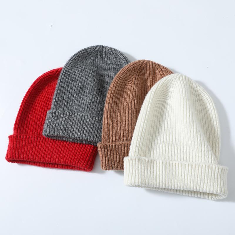 Pure Cashmere Autumn and Winter New Men's and Women's Solid Color Ingot Needle Cuffed Simple Warm Knitted Baotou Hat