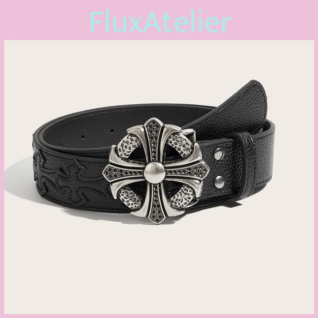 Cross Mens Punk Flower Designer Belt With Alloy Buckle And Detail Studded