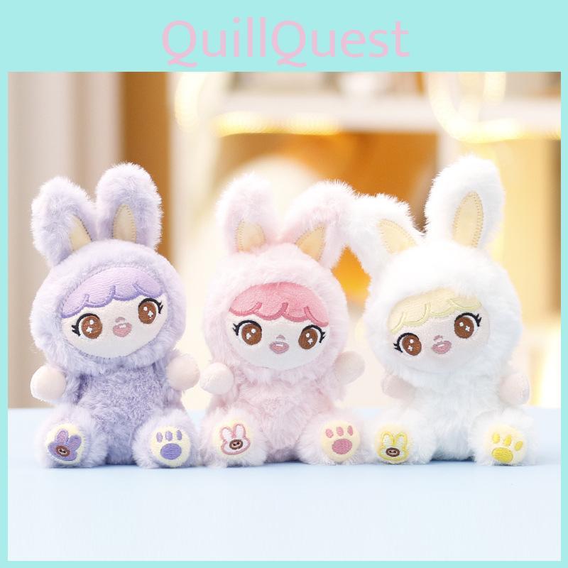 Three Baby Plush Rabbit Keychain Pendant With Embroidery Design Gift For