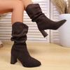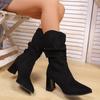 Cizme de modă cu toc înalt cu vârf ascuțit, vintage, 2025 iarnă, noi, mărime plus, lână, cizme medii pentru femei