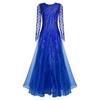 Costum Dans de Sală pentru Femei Strălucitor Strasuri Dantelă Florală Mâneci Lungi Spate în V Rochie cu Tiv Larg Evazat