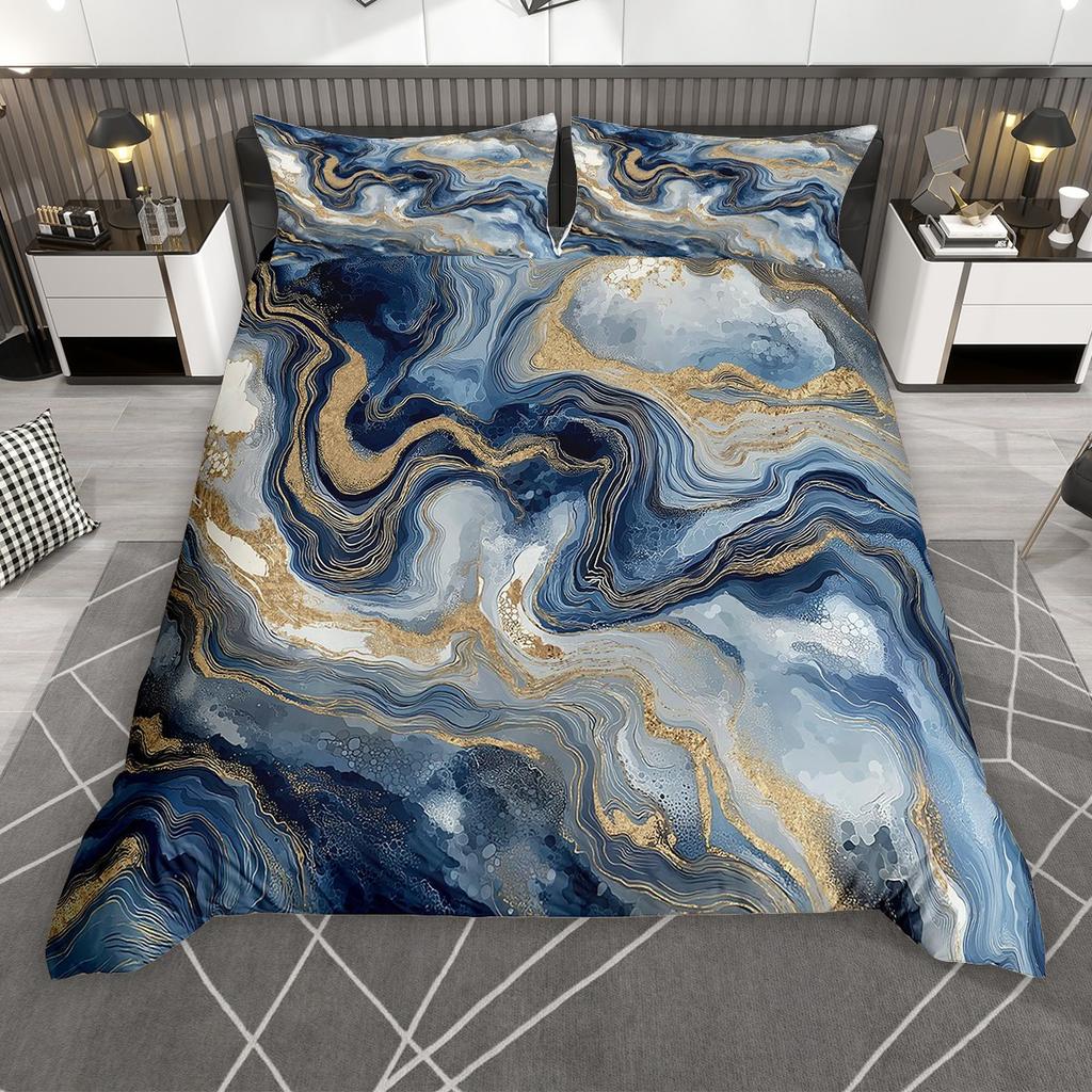 Homewish Chic Marble Duvet Cover Set, Aesthetic Watercolor Artwork Comforter Cover Set, Colorful Marbling Bed Set