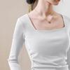 Square neck bottoming shirt women's 2025 new women's clothing, thin big neck white inner pleated waist long-sleeved chic top