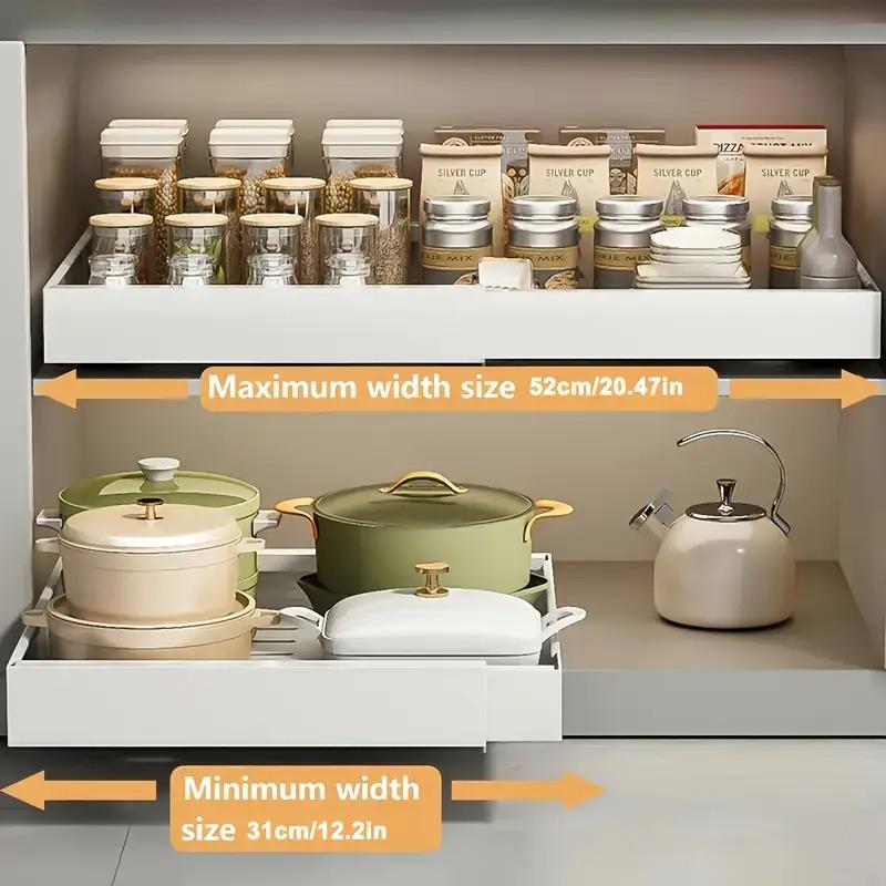 Pull-out Cabinet Storage Rack with 3 Silent Slide Rails, No Drilling Required, Suitable for Kitchen Spice Tableware Organization