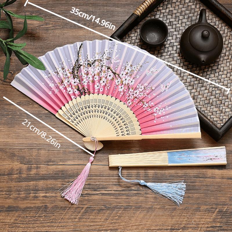 Ventilator pliabil din mătase, retro, japonez, chinezesc, 1 buc, ventilator pliabil din bambus, ciucuri, ventilator de mână, decorație pentru casă, ornament, cadou artizanal
