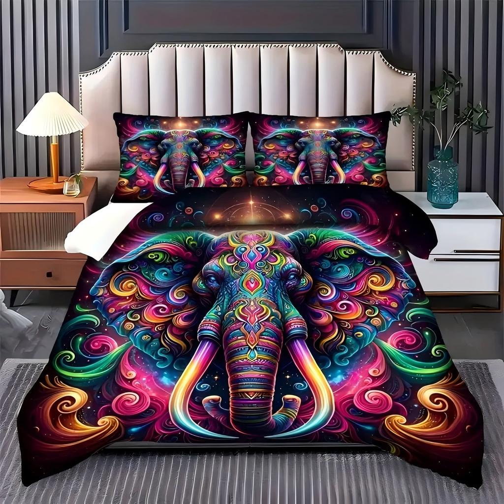 Colorful Elephant Pattern 3D Printed Duvet Cover Soft Comfortable Bedding Set Wildlife Modern Art Style Quilt Cover Pillowcase
