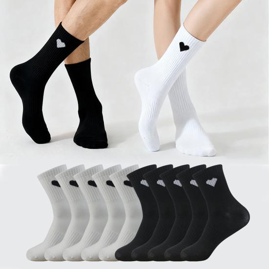 5 Pairs Men Love Heart Socks Casual Ribbed Crew Socks with Black White Hearts Breathable Sweat-Absorbent Athletic Socks for Sports Running