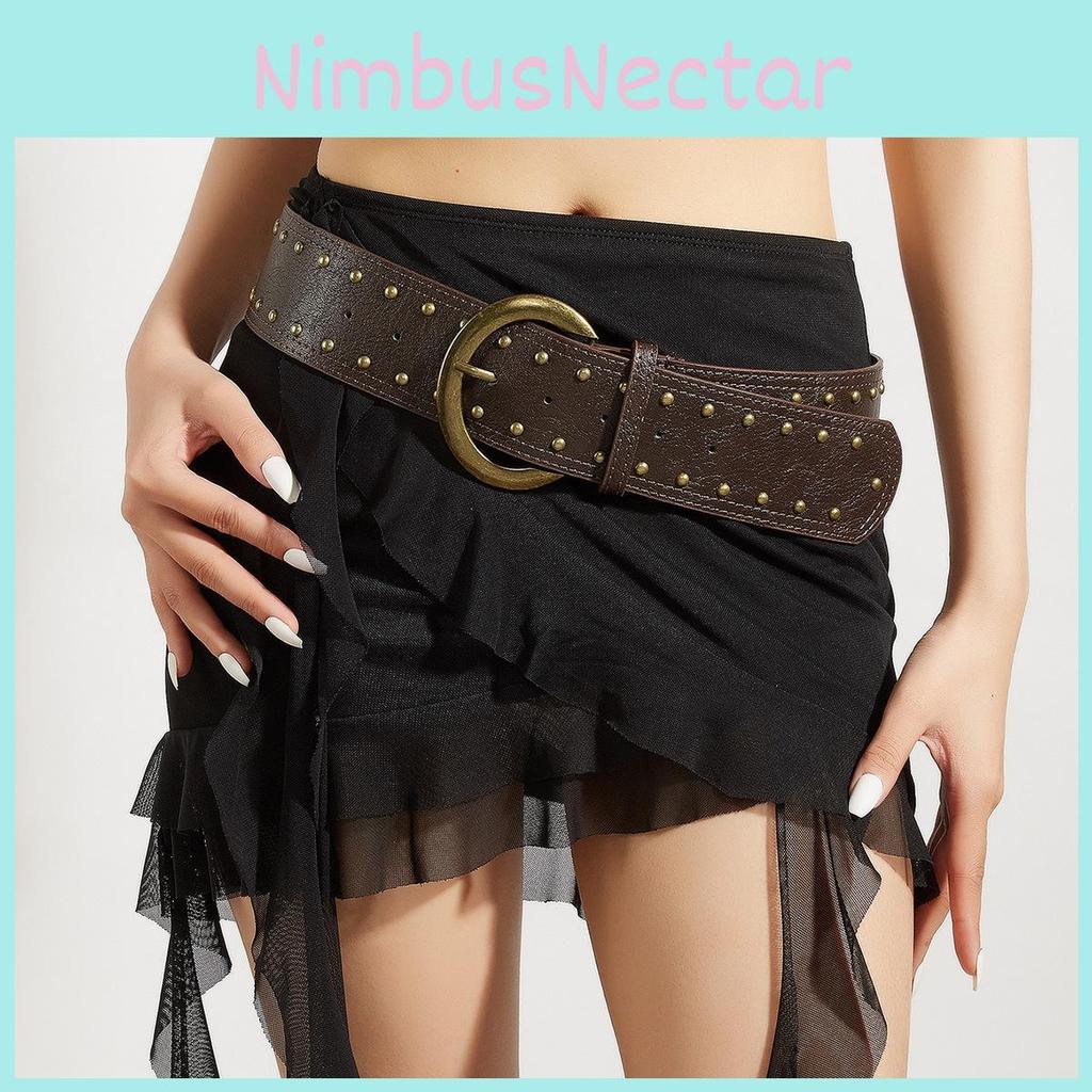 Leather Punkinspired Rivet Belt With Double Row Stitching Urban Style Outfits