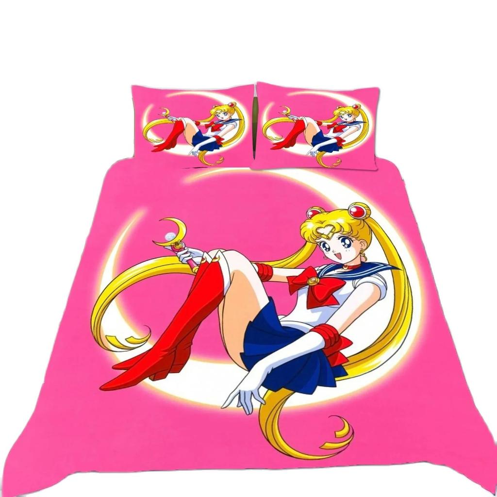 Kawaii Anime Sailor Moon Bedding Set Beautiful Girl Duvet Cover Girls Pink Quilt King Queen Twin Comforter Set With Pillowcase