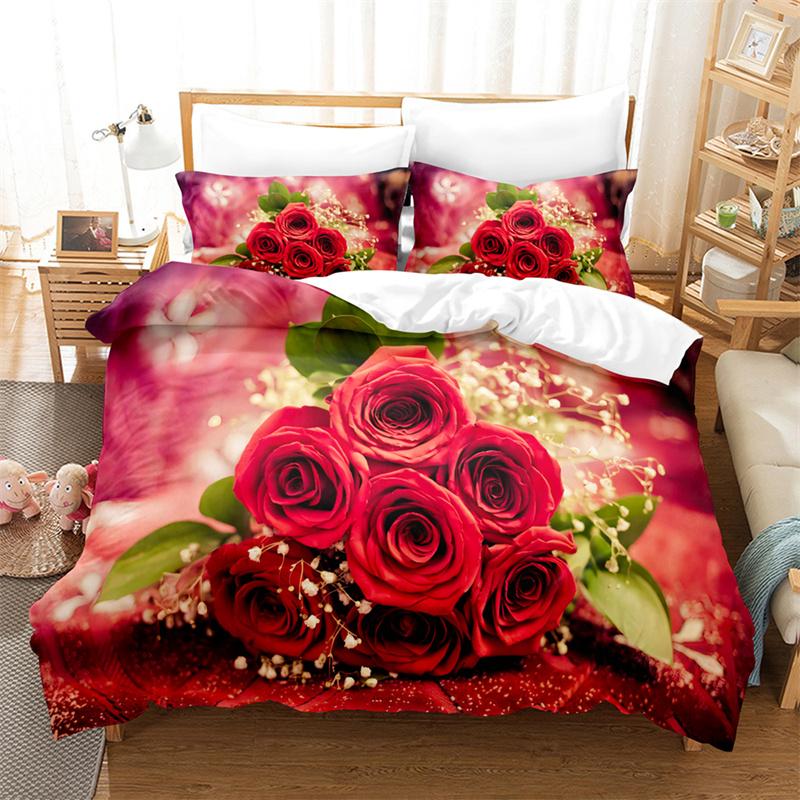 Red Rose Queen Size Duvet Cover 220X240 Bedding Set 3Pcs/2Pcs With Pillowcase Flower Quilt Cover For Double Bed Single Beds