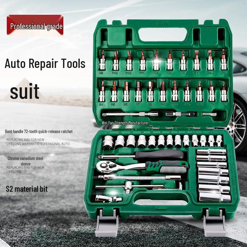 53-Piece Automotive Repair Tool Set with Ratchet Wrench and Socket Toolbox