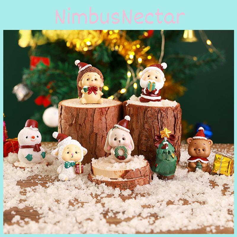 Resin Christmas Animal Figurine Set Santa Claus Tree Decor Kids Gift Birthday