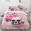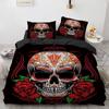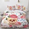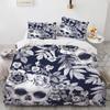 Skull Duvet Cover Set Queen King 3D Skeleton Floral Skull Pattern Printed Polyester Comforter Cover With Zipper For Teen Adult