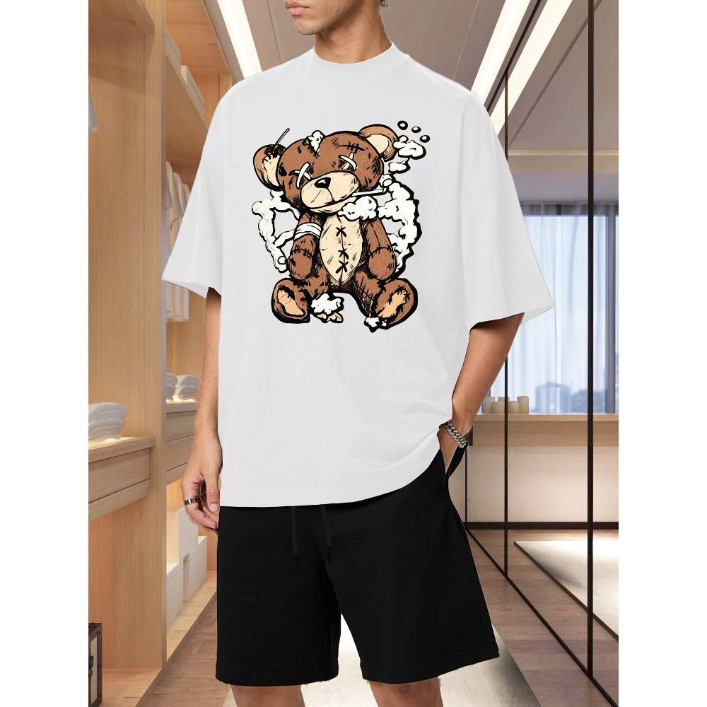 Distressed Teddy Bear Graphic T-Shirt,Soft Breathable & Fade-Resistant, Classic Fit for Daily Casual Wear