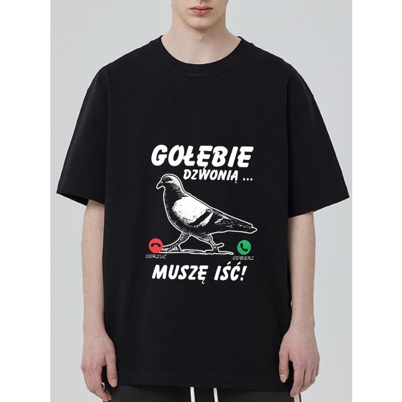 Black T Shirt with Pigeon and Text Design for Casual Wear