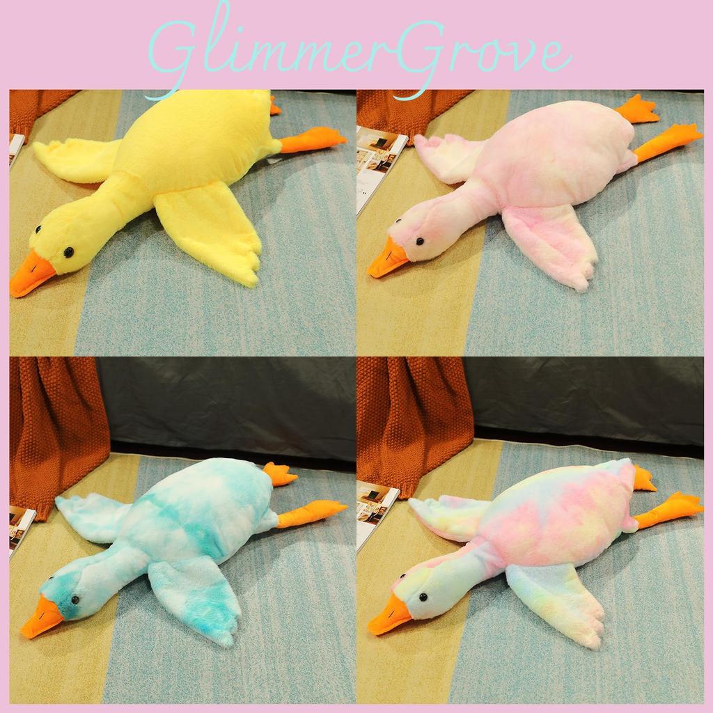 Available in a stunning array of vibrant tie-dye colors, including cheerful yellow, blush pink, serene blue, rainbow hues, earthy brown, soft gray, and classic white.At a height of 45cm, this cuddly companion is just the right size for a cozy cuddle or as a decorative pillow on your bed or sofa.Crafted from high-quality short plush material and filled with soft PP cotton, this goose is not only incredibly huggable but also durable enough to withstand endless playtime and snuggles.