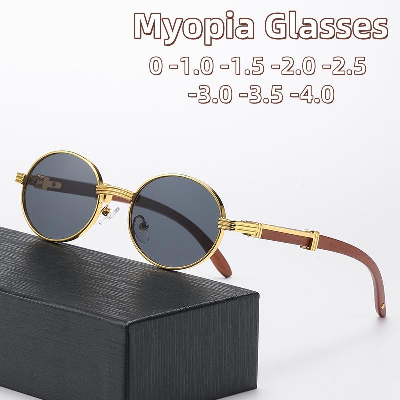 New Retro Small Round Frame Myopia Glasses Men'S Personalized Imitation Wood Grain Driving Punk Trend Sunglasses Diopter To -4.0