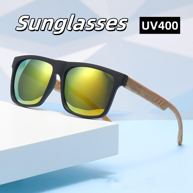 Retro Square Frame Sunglasses Bamboo And Wood Styles Trendy And Fashion Legs Outdoor Sun Protection And Uv Protection Glasses