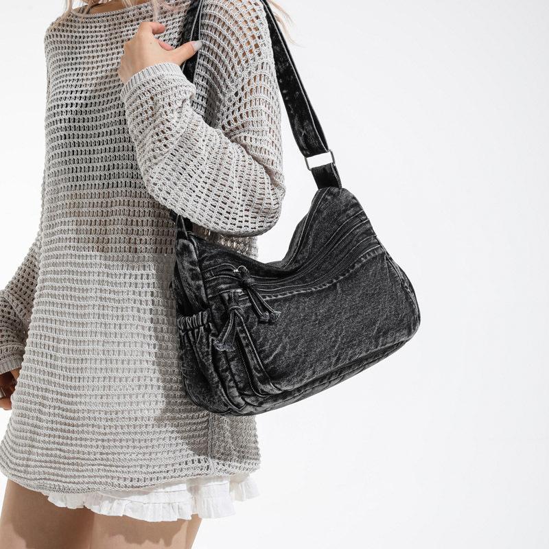 Denim bag women's tote bag large capacity 2025 summer shoulder bag new fashion simple commuter messenger bag