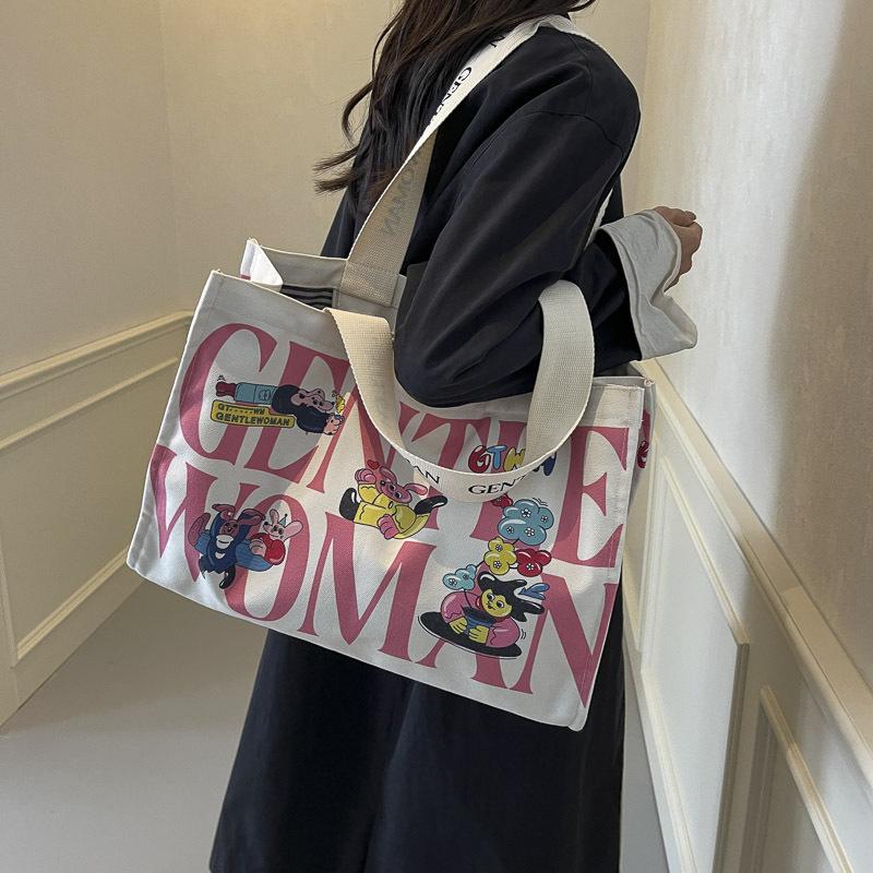 Canvas bag women's large capacity 2025 new bag portable commuter bag casual fashion fresh bag single shoulder mommy bag