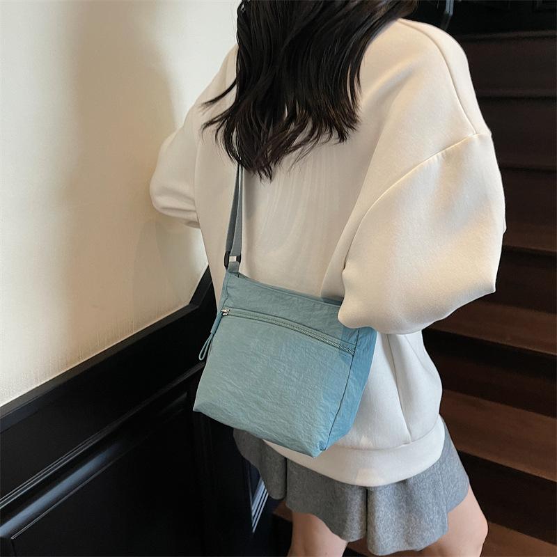 Solid color simple shoulder messenger bag women's casual lightweight portable small square bag large capacity simple denim tote bag