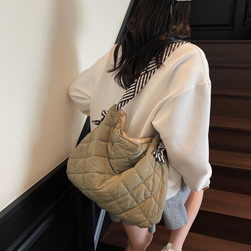 2025 autumn new fashionable large-capacity shoulder bag, diamond checkered bread suit bag, women's casual versatile tote bag