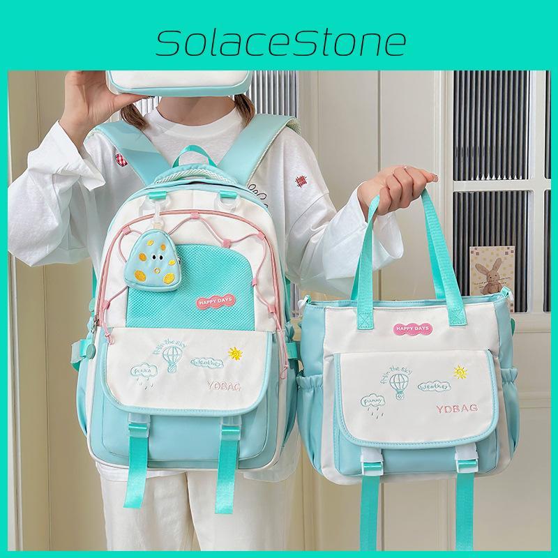 Cartoon Embroidery Letter Student Lightweigh Backpack Three Piece For School Use