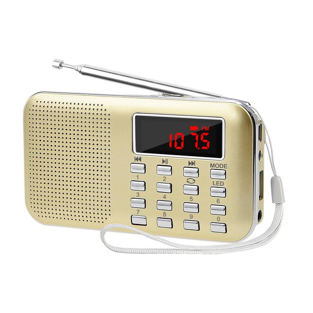 LEFON Rechargeable Multi-Function AM/FM Pocket Radio with USB and microSD Card Support, MP3 Player, LED Light, and Portable Radio (Gold)