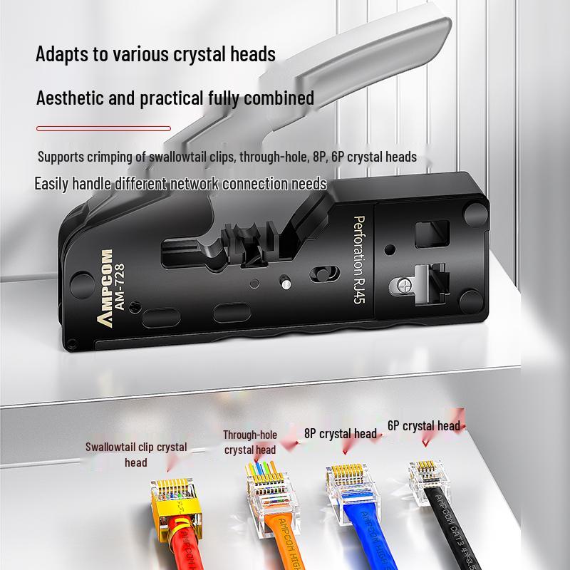 Clește de sertizat profesional pentru cablu de rețea cu capăt Crystal cu conectori cu 5, 6, 7 găuri traversante