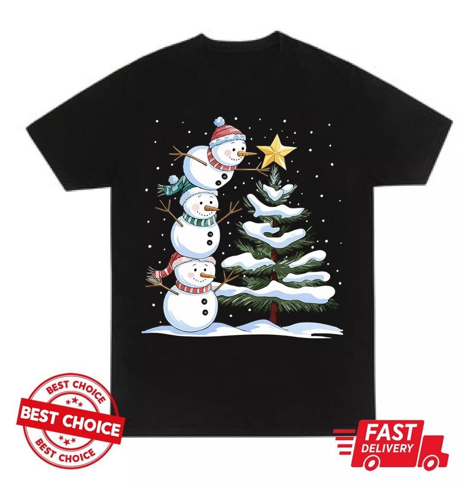 Cute Santa Snowman Decor Christmas Tree Unisex Black Shirt